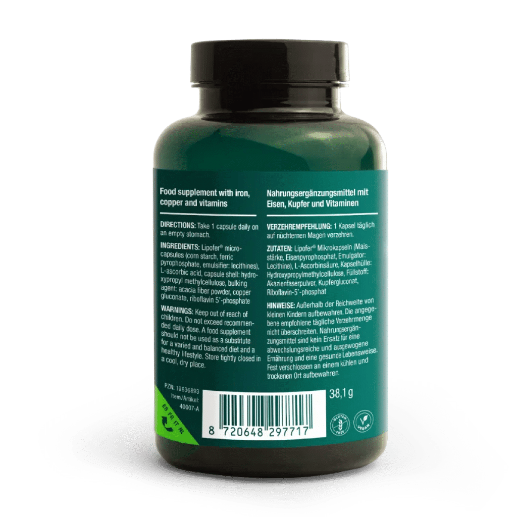 Dankzij de Lipofer® microcapsules is dit supplement mild voor de maag, wat een veelvoorkomende klacht bij ijzersuppletie voorkomt. Bovendien zorgen de aanvullende micronutriënten voor een synergetisch effect op de ijzerstofwisseling.