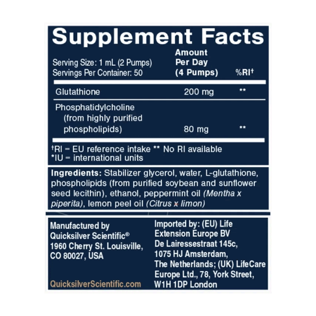 Liposomal Glutathione van Quicksilver Scientific is een vloeibaar glutathionsupplement met een liposomaal afgiftesysteem. Glutathion (bestaande uit de aminozuren L-glutaminezuur, L-cysteïne en glycine) komt van nature in elke lichaamscel voor. Het staat bekend als een van de belangrijkste endogene (in het lichaam aangemaakte) antioxidanten. Hoewel glutathion een lange geschiedenis heeft in diverse onderzoeksgebieden, is het belangrijk te vermelden dat de Europese Autoriteit voor voedselveiligheid (EFSA) nog geen definitief goedgekeurde gezondheidsclaims heeft afgegeven voor glutathion.