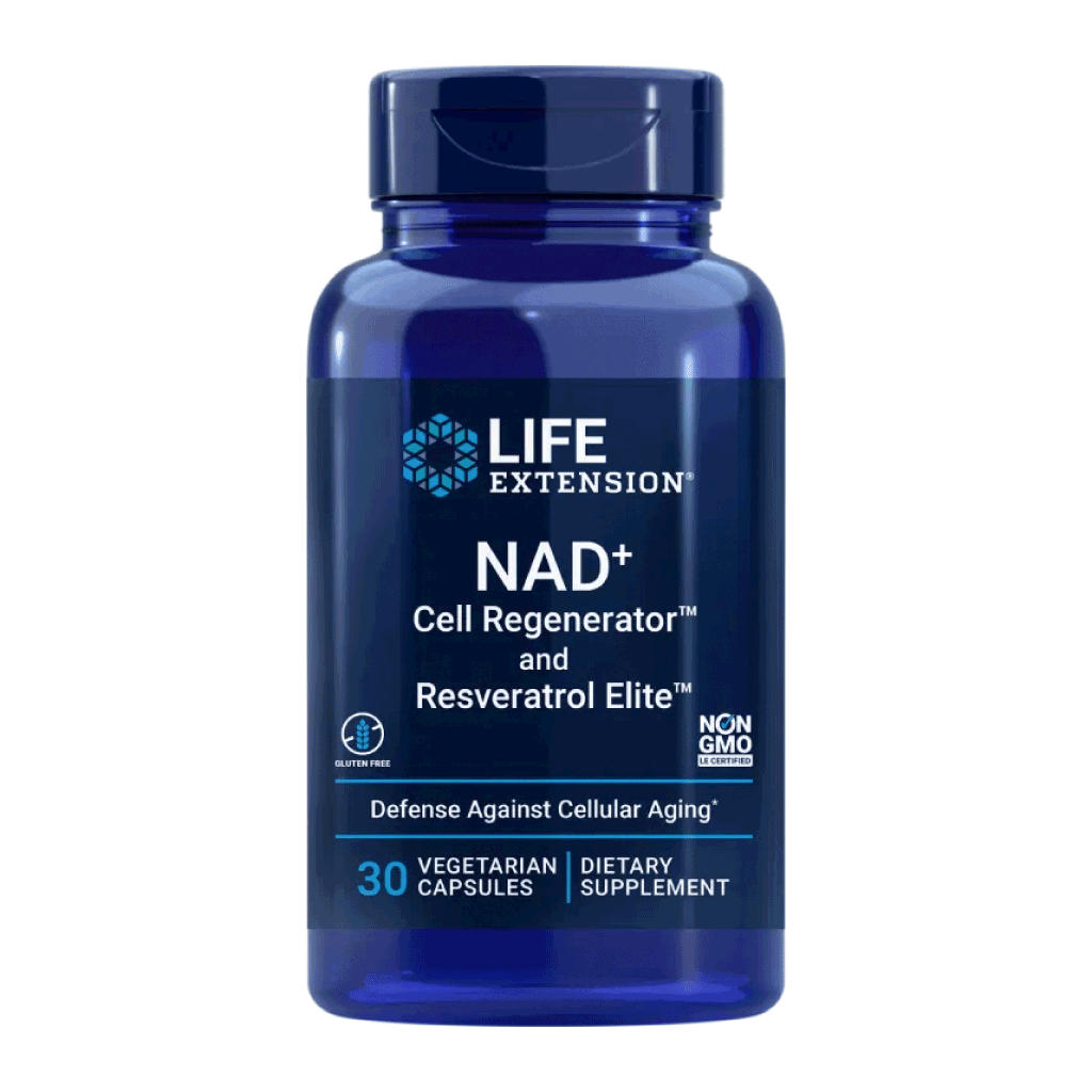 NAD+ Cell Regenerator™ en Resveratrol Elite™ van Life Extension is een combinatieformule met nicotinamide riboside (NIAGEN®), resveratrol, quercetine en fisetine. Nicotinamide riboside is een vorm van vitamine B3 die in het lichaam kan worden omgezet in NAD+ (nicotinamide-adenine-dinucleotide), een belangrijke cofactor in het energiemetabolisme. Resveratrol, quercetine en fisetine zijn polyfenolen met een antioxidantfunctie. Hoewel er veel wetenschappelijk onderzoek loopt naar de mogelijke effecten van deze ingrediënten, zijn er op dit moment geen door EFSA officieel goedgekeurde gezondheidsclaims voor nicotinamide riboside, resveratrol, quercetine of fisetine, behalve de basisclaims voor vitamine B3 (niacine).