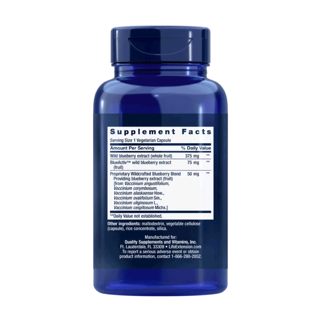 Blueberry Extract by Life Extension combines the power of wild blueberry extracts with the latest technologies for optimal antioxidant and overall health support. The combination of BlueActiv™ and AuroraBlue® provides a highly concentrated source of bioactive compounds, including anthocyanins, for powerful synergistic effects. This supplement contains no added preservatives or artificial ingredients.