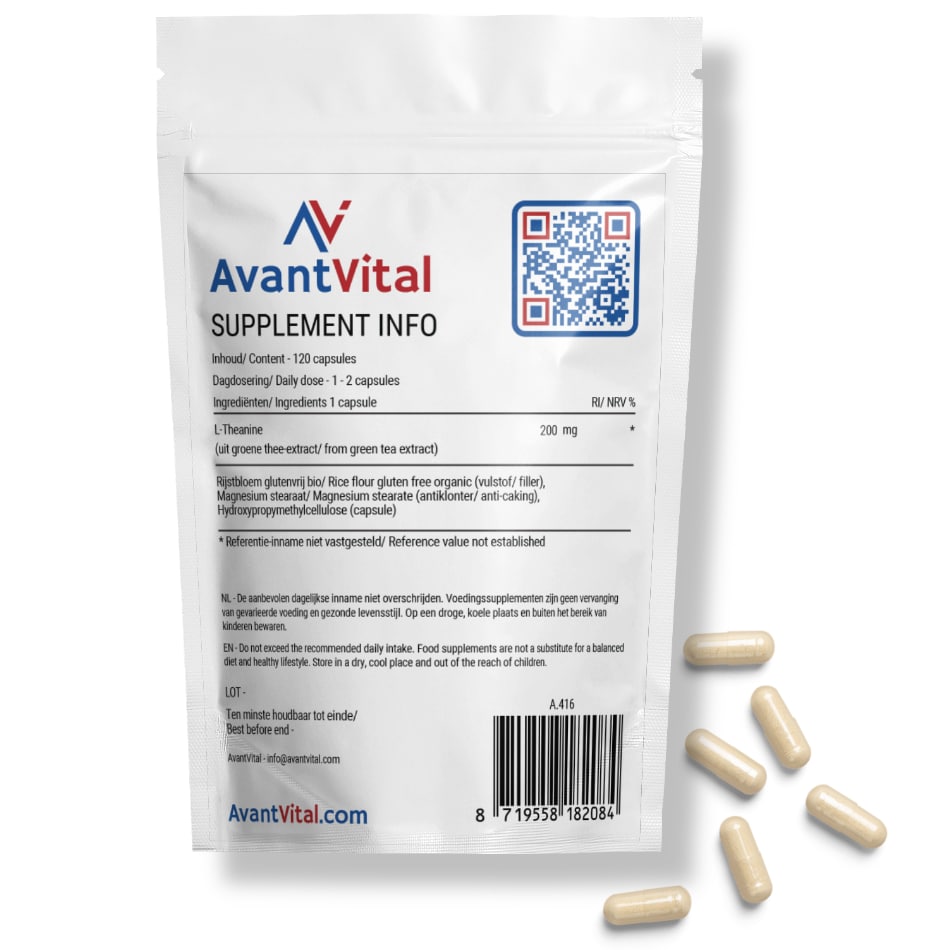 Each capsule contains 200 mg of L-Theanine, derived from high-quality green tea extracts. This ensures a potent and effective supplement. Additionally, AvantVital offers this product in a practical, resealable package with 120 capsules.